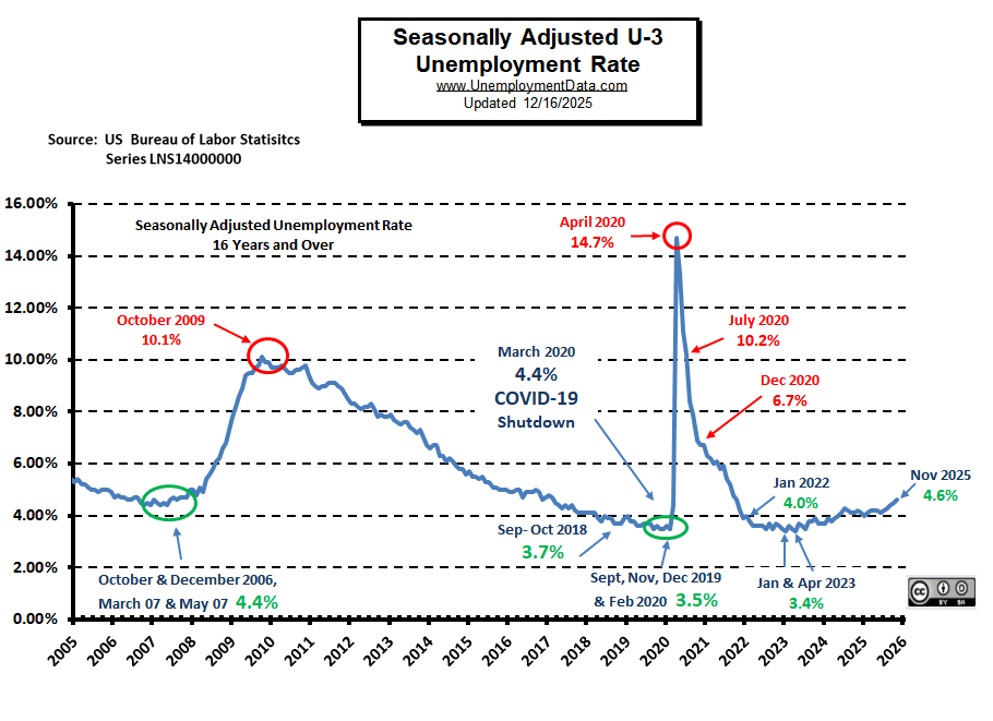 - Unadjusted U3- 4.6% up from 4.1% in December